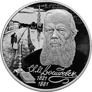 Серебряная монета 2 рубля "Писатель Ф.М. Достоевский, к 200-летию со дня рождения (11.11.1821)" Ag 925, 15,55г., 2021г., Proof