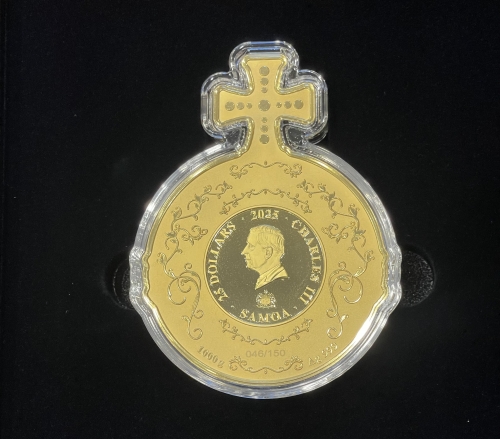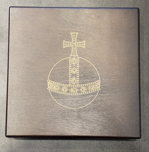 Крест на сфере символизирует христианский мир, а полосы хрустальных вставок, разделяющие сферу на три части, указывают на три континента, известные в средние века.
