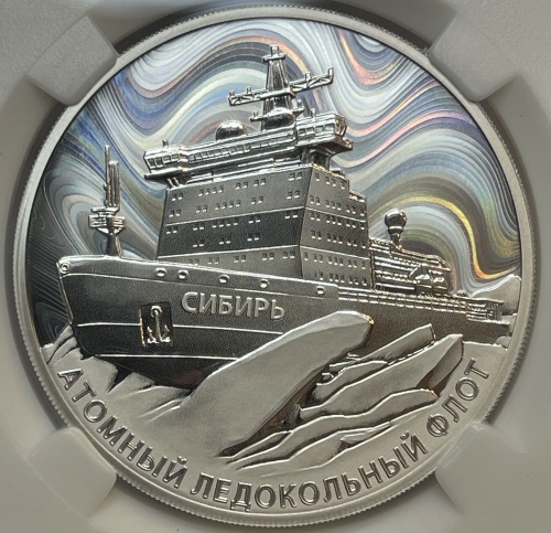Серебряная монета 3 рубля "Ледокол Сибирь" 2024г, 31,1г в слабе ННР PROOF 70