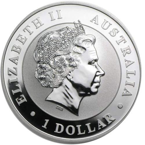 На аверсе монеты Кукабарра изображена английская королева Елизавета II. Портрет окружен надписью “ELIZABETH II  AUSTRALIA  1 DOLLAR”.