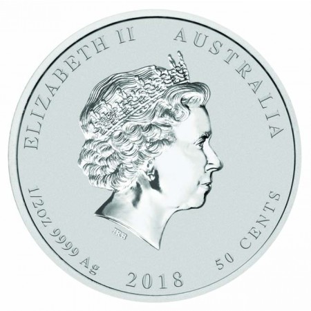 На аверсе изображен профиль королевы Елизаветы II. Сверху надписи: «ELIZABETH II» (Елизавета II) и «AUSTRALIA» (Австралия). Также внизу указаны вес (1/2 oz – ½ унции), проба (9999), название металла (Ag - серебро), год (2018) и номинал монеты – 50 австралийских центов.
