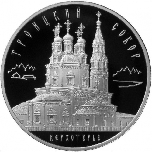 Серебряные монеты 3 рубля "Троицкий собор, г. Верхотурье Свердловской обл.", 2013 год, 31,1г., ПРУФ