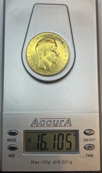 Вы всегда можете купить или продать, а также узнать текущую стоимость монеты - 'Золотая монета 50 франков Наполеон III 1857 г.,Au 900' в г.Ханты-Мансийск (Ханты-Мансийский автономный округ - Югра). У нас Вы получите полную и необходимую консультация от квалифицированных специалистов и профессионалов, работающих на рынке инвестиций в драгметаллы уже долгое время. Мы стараемся предложить нашим клиентам лучшие цены выкупа и продажи на рынке (с минимальным спредом), а также гарантируем конфиденциальность всех проводимых сделок.