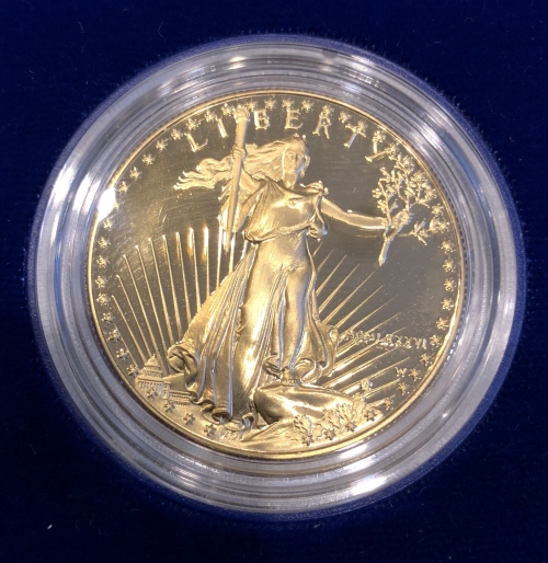 • Впервые золотая монета Американский орел была отчеканена на монетном дворе США в 1986 году. В настоящее время Американский золотой орел выпускается в четырех номиналах – унция, 1/2, 1/4, 1/10.  В соответствии с действующим в США законодательством (Закон о весовых монетах) монеты должны быть отчеканены из золота, добытого на территории Соединенных Штатов Америки. Монета Золотой орел имеет пробу 22 карата, что соответствует содержанию 91,67% чистого металла в монете, а легирующие примеси составляют: серебро – 3% и медь – 5,33%. Данная монета является одной из самых популярных инвестиционных монет в мире.