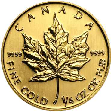 Золотая монета Канады "Кленовый лист", Canadian Gold Maple Leaf 10 долларов, 1/4 OZ